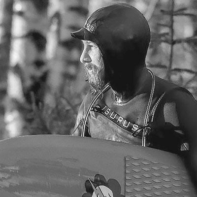 A Russian cold-water charger. Regularly surfs the Baltic Sea and Arctic Ocean.